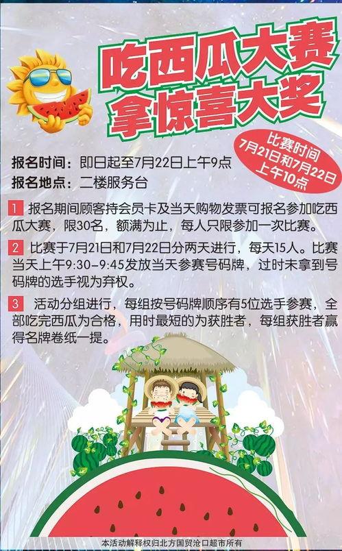 亲爱的朋友们,是不是最近你的朋友圈都被“吃瓜大赛”刷屏了?没错,这个夏天最火的全民活动就要开始了!你还在等什么呢?快来加入这场盛大的“吃瓜”狂欢吧!下面,就让我来给你详细介绍一下吃瓜大赛的报名方式,让你轻松成为这场盛宴的主角!